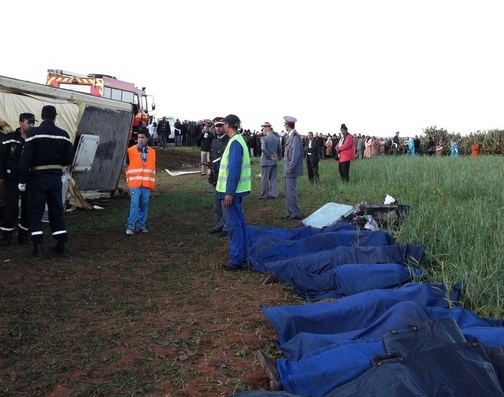 L’autocar ’’Annamir Assarii’’  qui à fait son départ de Ras el Ain (Youssoufia) ,vers 05h00 du matin, à destination de Casablanca,s’est renversé au bord de la route.  7 morts et des dizaines blessés . Les circonstances de cette accident restent  encore indéterminées.  Les  autorités attendent  dans les heures à venir, le témoignage du chauffeur de l’autocar et de quelques témoins