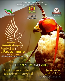 Sous l’égide de la Province d’El Jadida, l’Association des fauconniers lekouassem d’Ouled Frej, en collaboration avec l’Association provinciale des affaires culturelle et la Direction régionale de la culture,  a organisé la première édition du FESTIVAL DE LA FAUCONNERIE du 19 au 21 2013.
