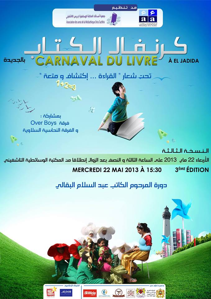 Sous le thème : Carnaval du Livre »découverte et plaisir ». 3ème édition du festival du livre le mercredi 22 mai à 15H30 à la Médithèque Tachfini