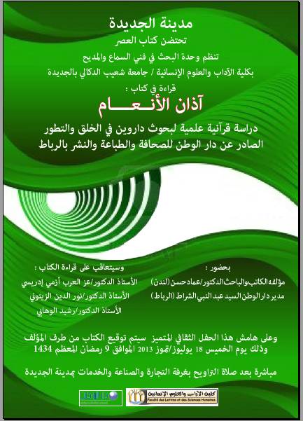 le livre Azan Al-Anaam sera signé par son auteur  et lu par: