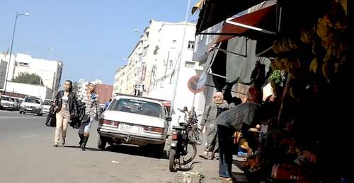 Constatez avec nous le laisser aller concernant le boulevard Mohammed V. On a l’impression  que nous ne sommes pas dans une ville mais dans un village : avec ces tajines qui mijotent sur le feu, avec des corbeilles pleines de légumes  qui bloquent le trottoir …