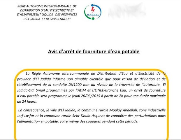 NB: On s’excuse auprès de nos chers lecteurs à propos d’une contusion concernant la coupure d’eau:  La coupure est à 2 h 00 et non 14h00
