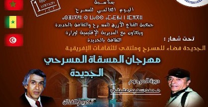 El Jadida abrite le premier Festival Théâtral de la Citerne aux goûts et aux rythmes de l’Afrique Le Festival Théâtral de la Citerne sera dédié à Mohammed Saïd Afifi, père du Théâtre Jdidi et rendra hommage à Hadj Abdelmajid Nejdi Le Festival Théâtral de la Citerne se tiendra du 27 au 30 Mars courant à El Jadida, à l’initiative More...